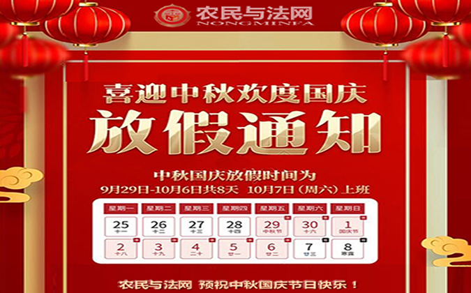 2023年喜迎中秋歡慶國慶,至此雙節(jié)來臨之際農(nóng)民與法網(wǎng)預(yù)祝中秋國慶節(jié)日快樂!